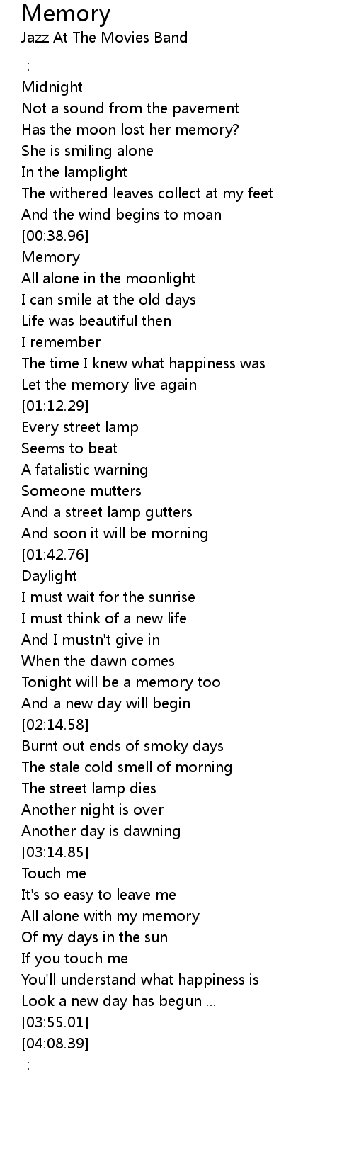 | [00:42.31] | All alone in the moonlight |