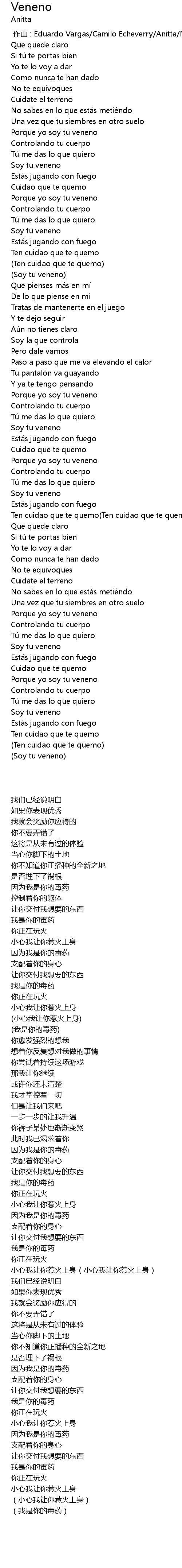 | [00:31.65] | Soy tu veneno |
