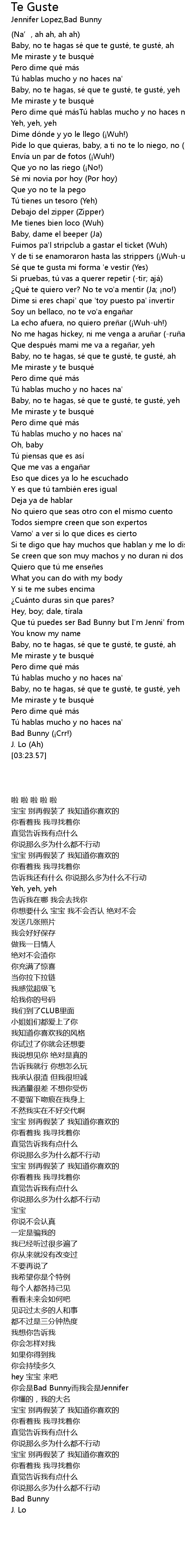 | [02:43.28] | 你会是Bad Bunny而我会是Jennifer |