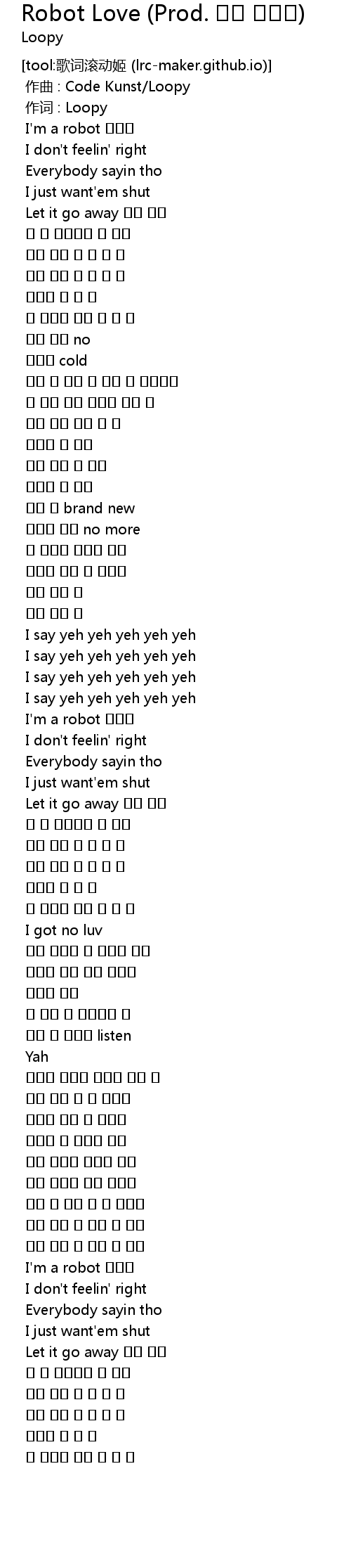 | 歌曲 | Robot Love (Prod. 코드 쿤스트) |