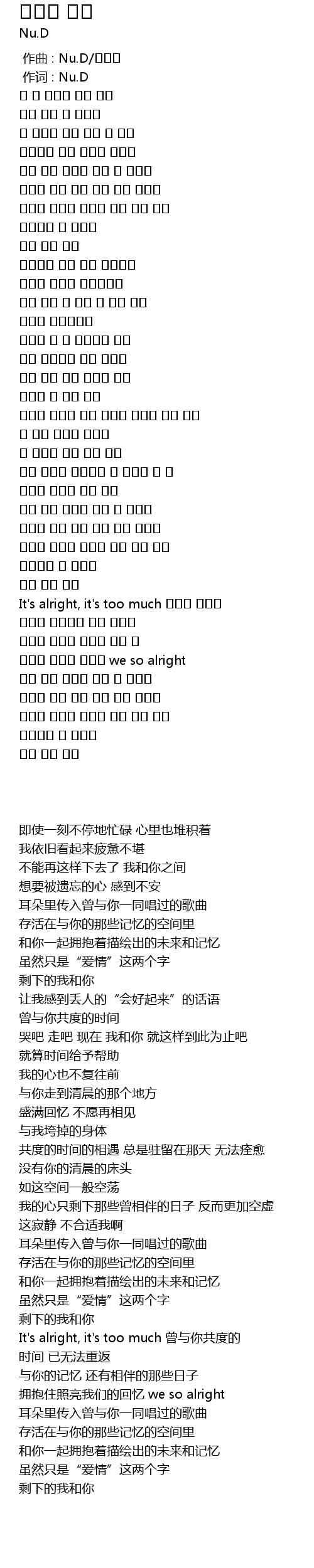 | [02:19.227] | It's alright, it's too much 그대와 보냈던 |