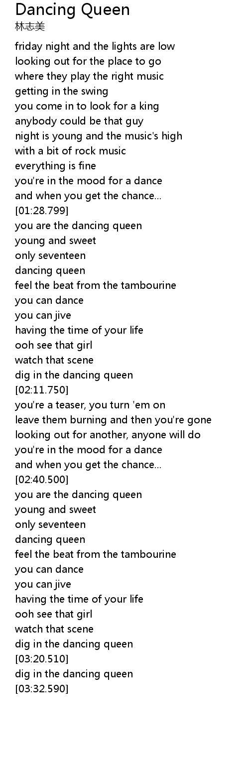 | [01:40.569] | dancing queen |