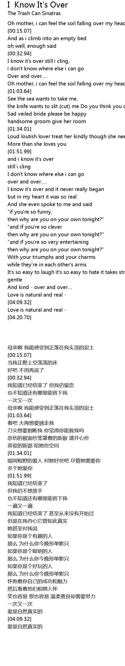 and i know it's over |