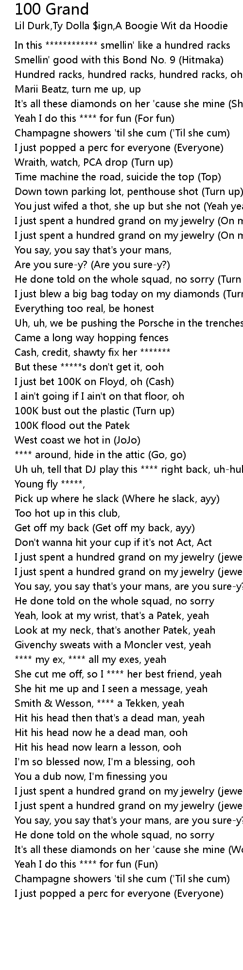 In this ************ smellin' like a hundred racks |