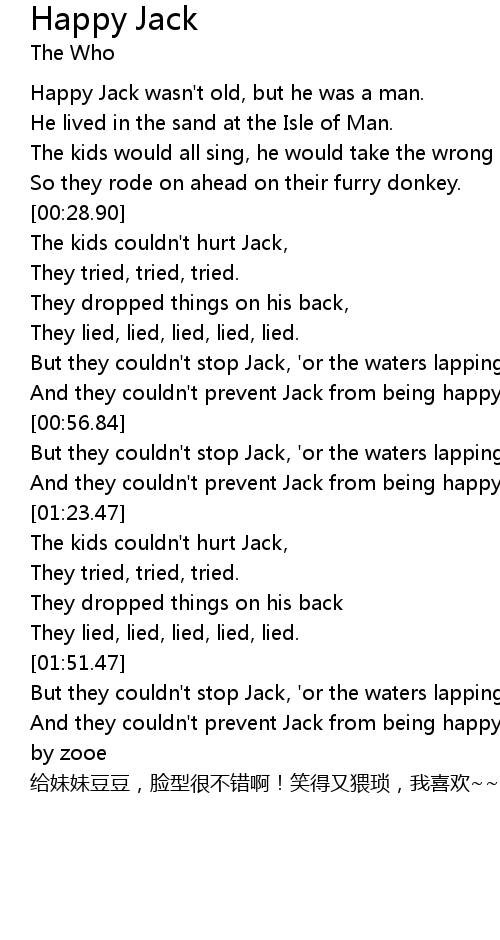 | [00:05.54] | Happy Jack wasn' t old, but he was a man. |