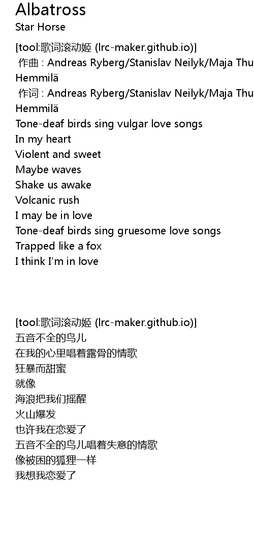| [02:59.459] | Tonedeaf birds sing gruesome love songs |