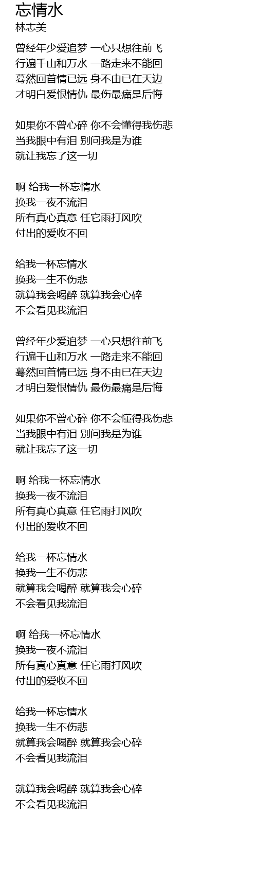 | 啊 给我一杯忘情水 | |