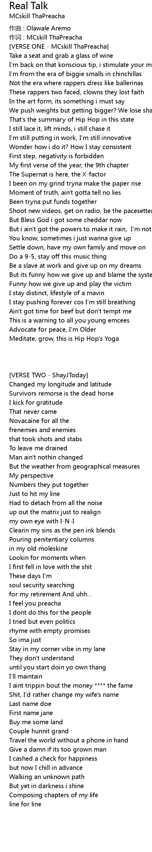 | 歌曲 | Real Talk |