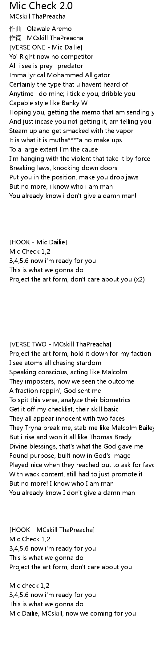 | 歌曲 | Mic Check 2.0 |