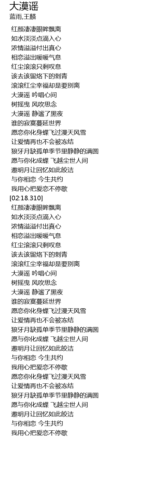 | [03:13.200] | 大漠谣 静谧了黑夜 |