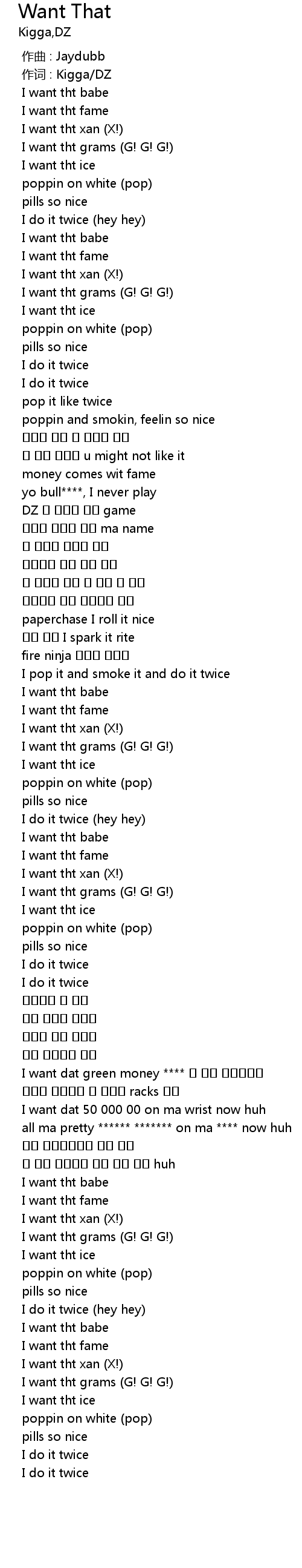 | [01:42.139] | I want dat green money **** 난 불고 날아다니지 |