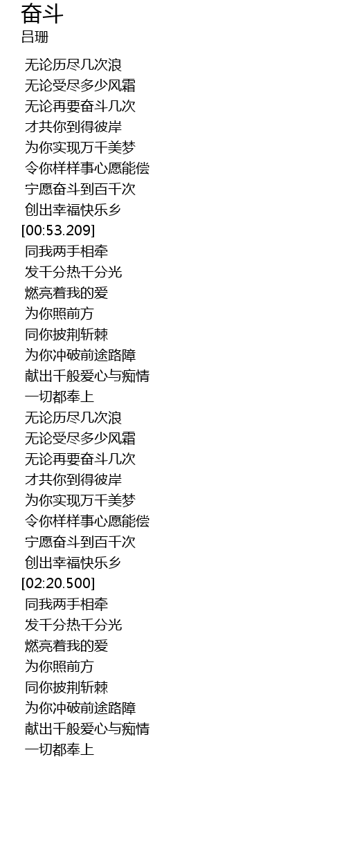 | [02:11.240] | 宁愿奋斗到百千次 |