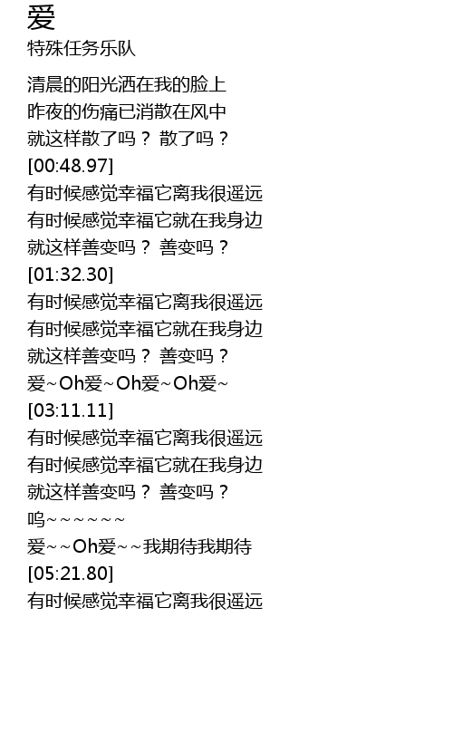 | [01:06.22] | 有时候感觉幸福它离我很遥远 |