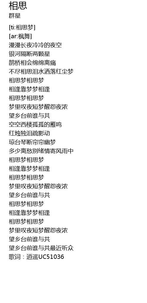 | [01:07.777] | 相思梦相思梦 |