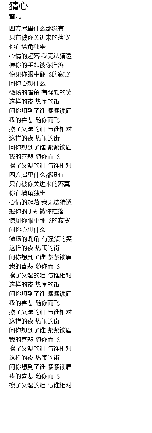| [02:55.24] | wèn nǐ xīn xiǎng shén me |