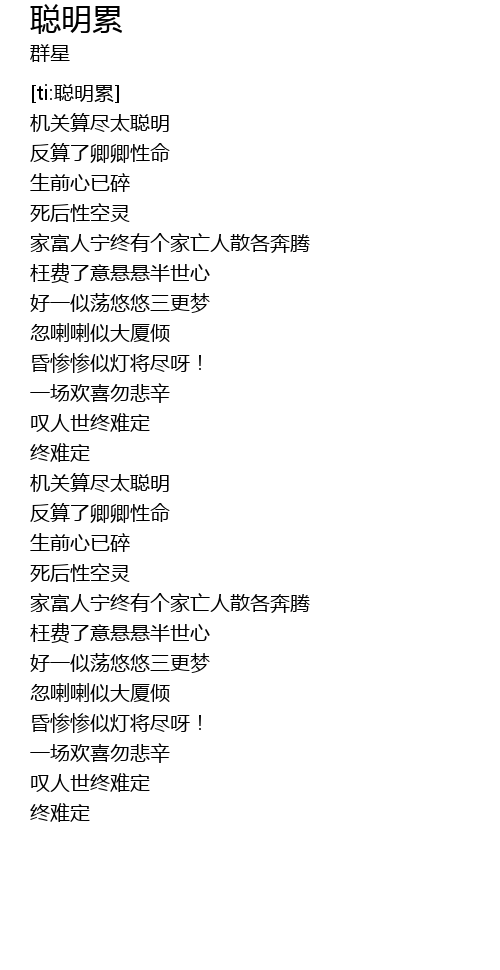 | [00:15.450] | 机关算尽太聪明 |