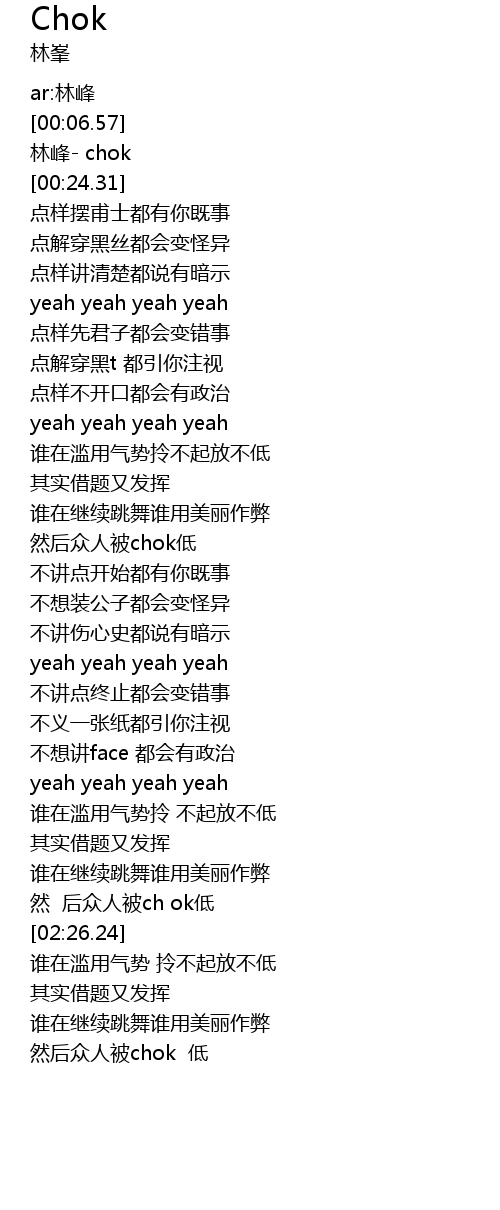 | [00:50.86] | 点解穿黑t 都引你注视 |