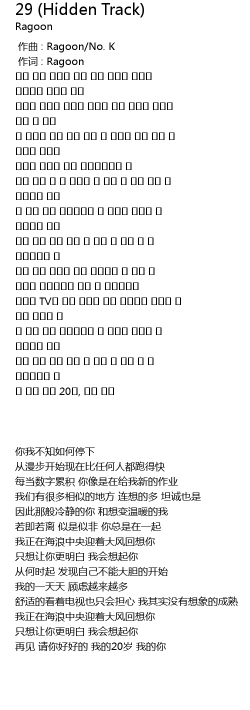 | [00:00.000] | 作曲 : Ragoon/No. K |
