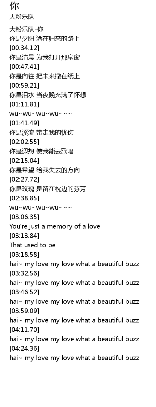 | [04:12.62] | hai my love my love what a beautiful buzz |