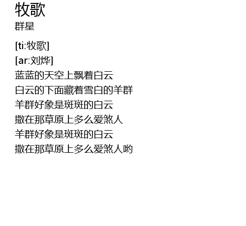 | [00:43.30] | 白云的下面藏着雪白的羊群 |