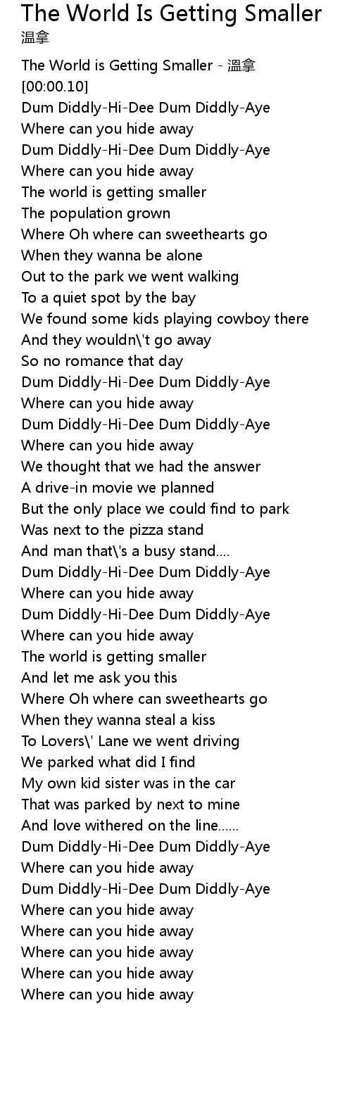 | [00:00.00] | The World is Getting Smaller - 溫拿 |