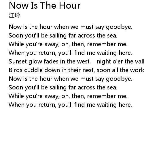 | 歌曲 | Now Is The Hour |