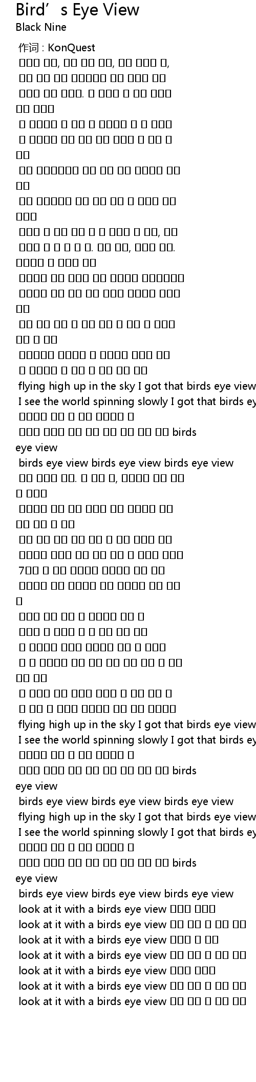 | [02:38.970] | birds eye view birds eye view birds eye view |