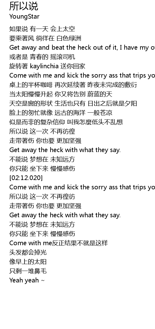 | [03:35.420] | Come with me fǎn zhèng jié guǒ bù jiù shì zhè yàng |