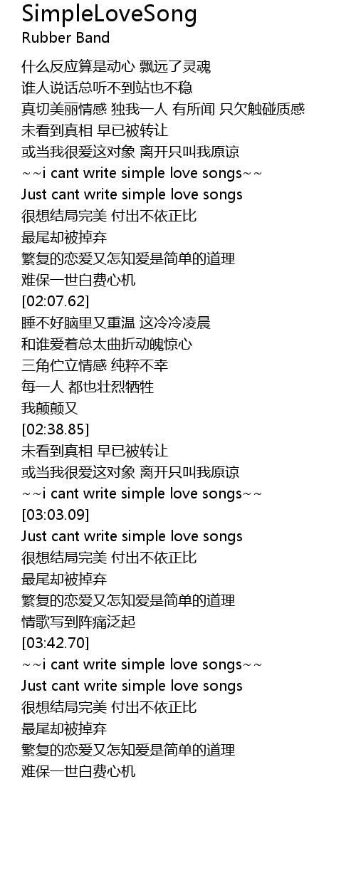 | [03:54.65] | Just cant write simple love songs |