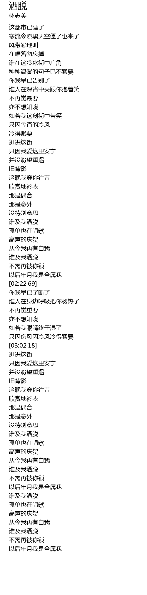 | [02:06.91] | 谁及我洒脱 |