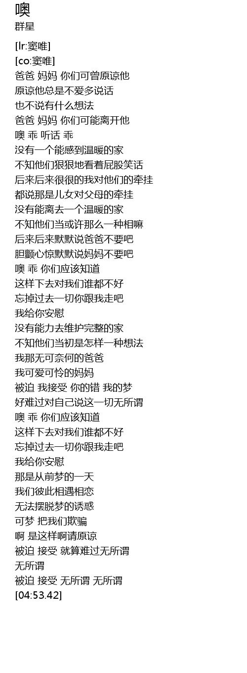 | [02:00.53] | 胆颤心惊默默说妈妈不要吧 |