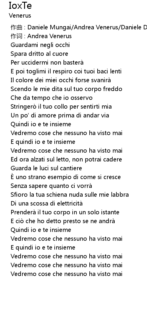 | [00:34.728] | Il colore dei miei occhi forse svanira |