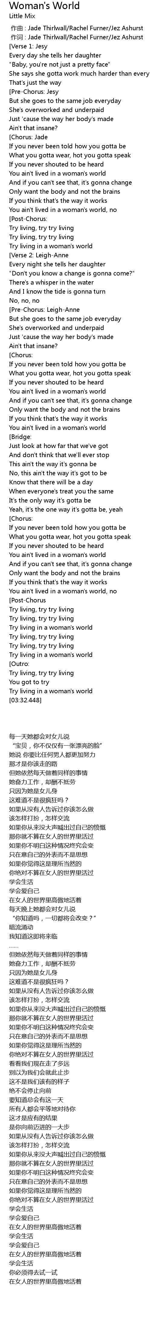| [00:00.552] | 作词 : Jade Thirlwall/Rachel Furner/Jez Ashurst |