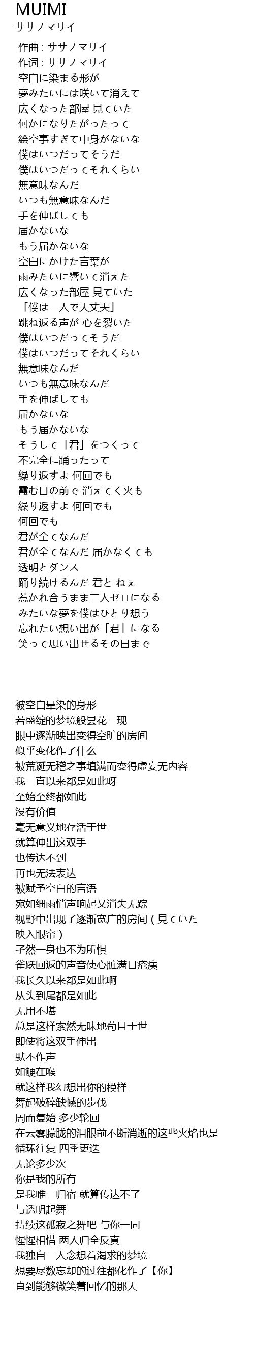 作词 : ササノマリイ |