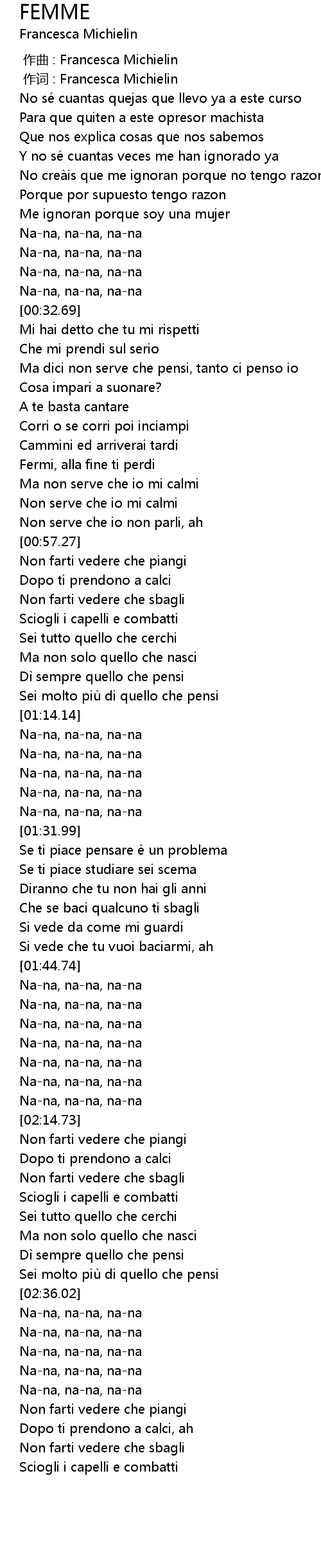 | [00:00.012] | 作词 : Francesca Michielin |