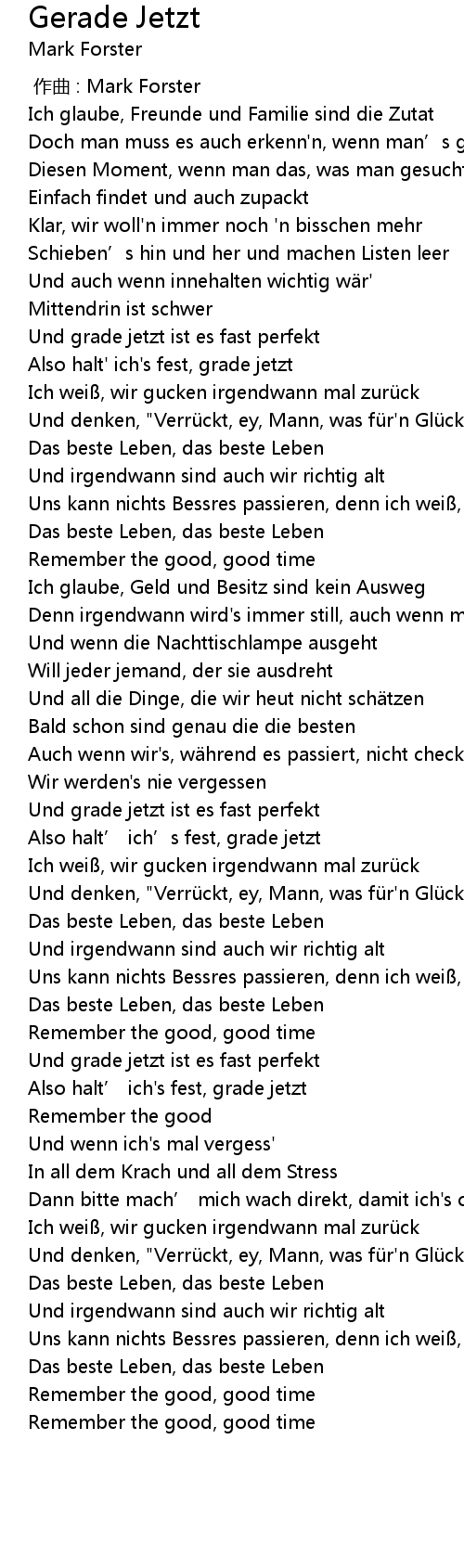 | [00:43.01] | Also halt' ich' s fest, grade jetzt |