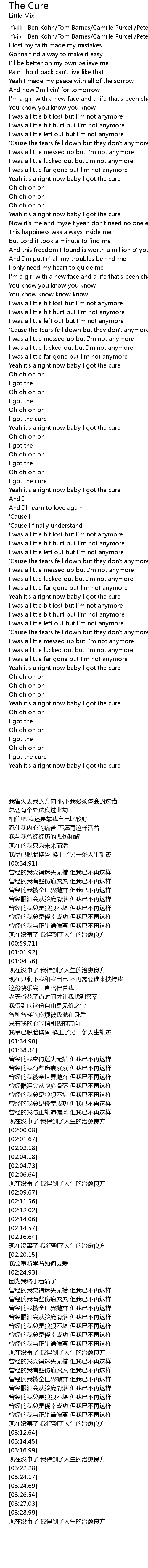 | [03:19.85] | Yeah it's alright now baby I got the cure |