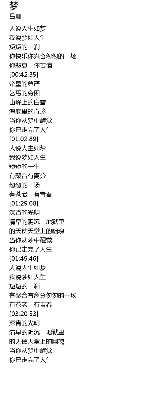 | [03:06.69] | wo shuo meng ru ren sheng |
