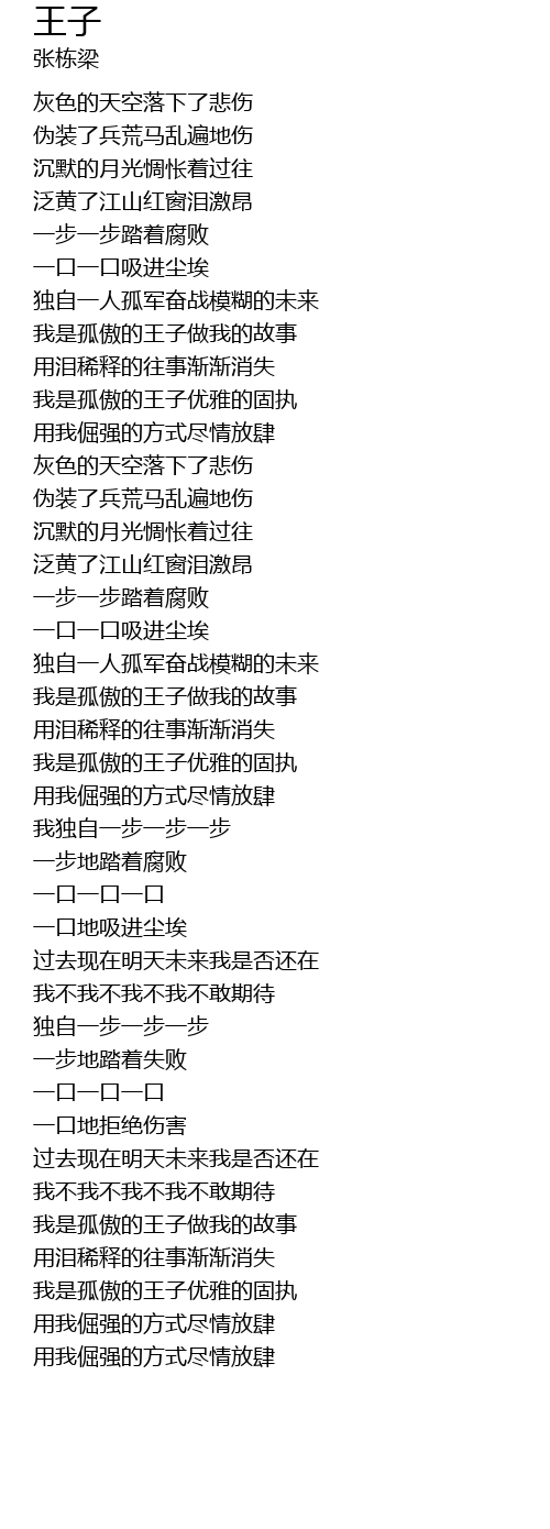 | [03:11.48] | wǒ shì gū ào de wáng zǐ yōu yǎ de gù zhí |
