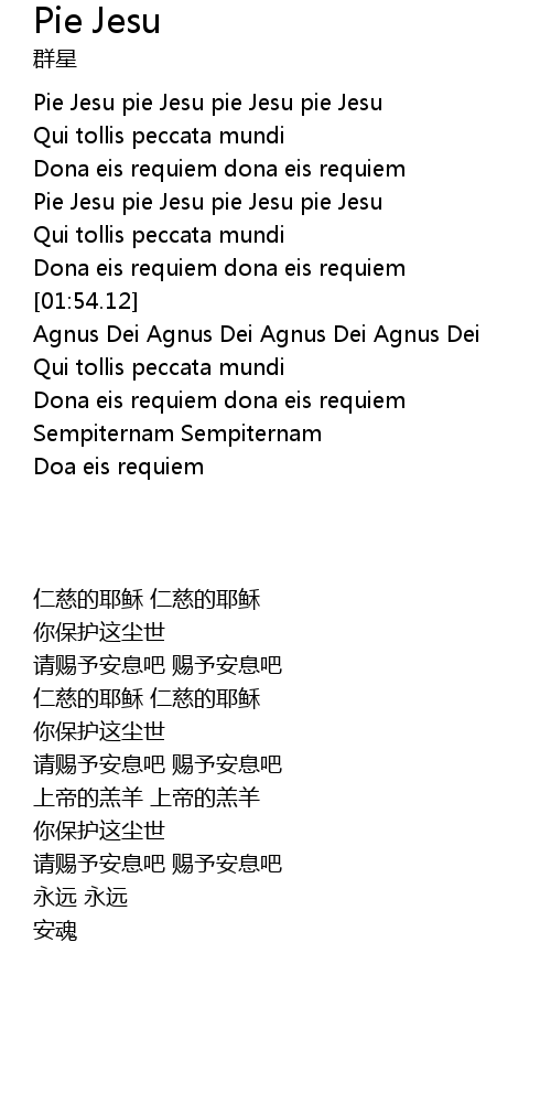 | [01:04.93] | Pie Jesu pie Jesu pie Jesu pie Jesu |