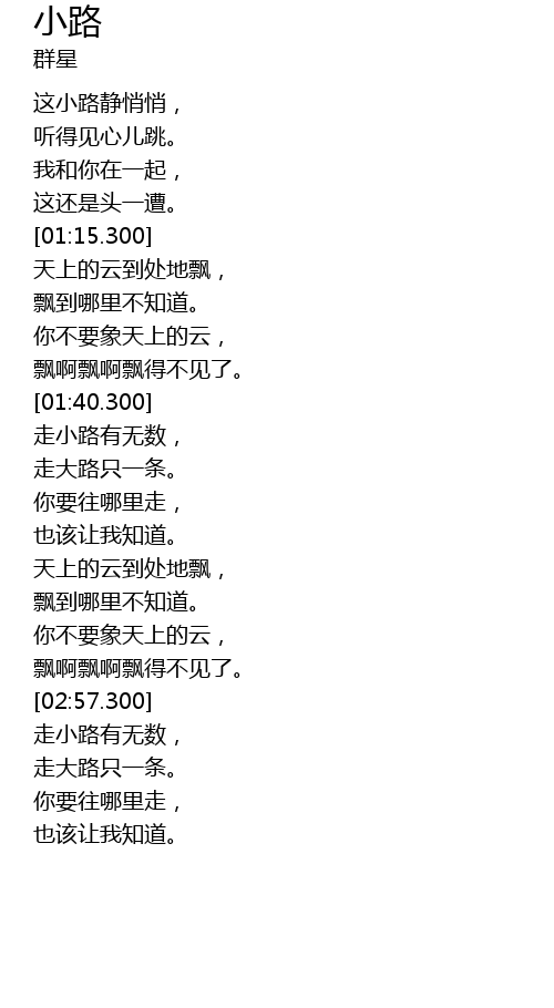 | [03:05.300] | zou da lu zhi yi tiao. |