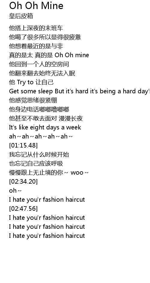 | [02:52.96] | I hate you' r fashion haircut |