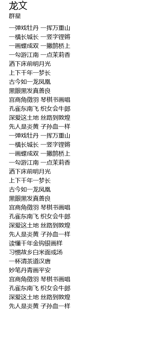 | [02:24.450] | 一横长城长 一竖字铿锵 |