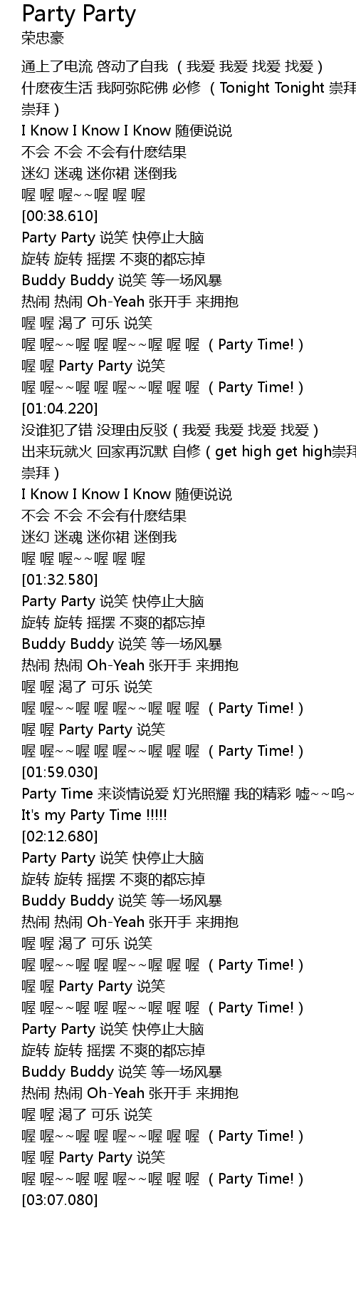 | [00:38.850] | Party Party 说笑 快停止大脑 |