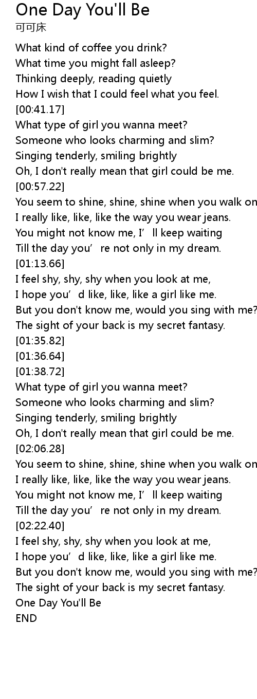 | [00:53.32] | Oh, I don' t really mean that girl could be me. |
