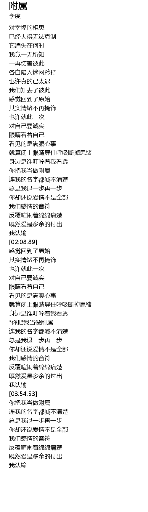 | [01:33.89] | nǐ bǎ wǒ dàng zuò fù shǔ |