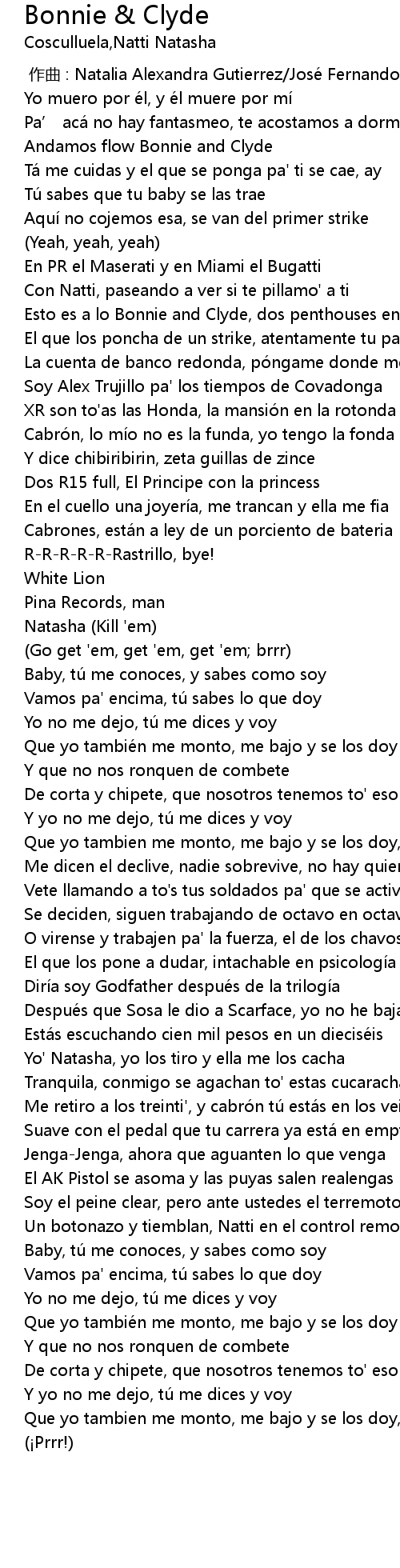 | [00:12.74] | Andamos flow Bonnie and Clyde |