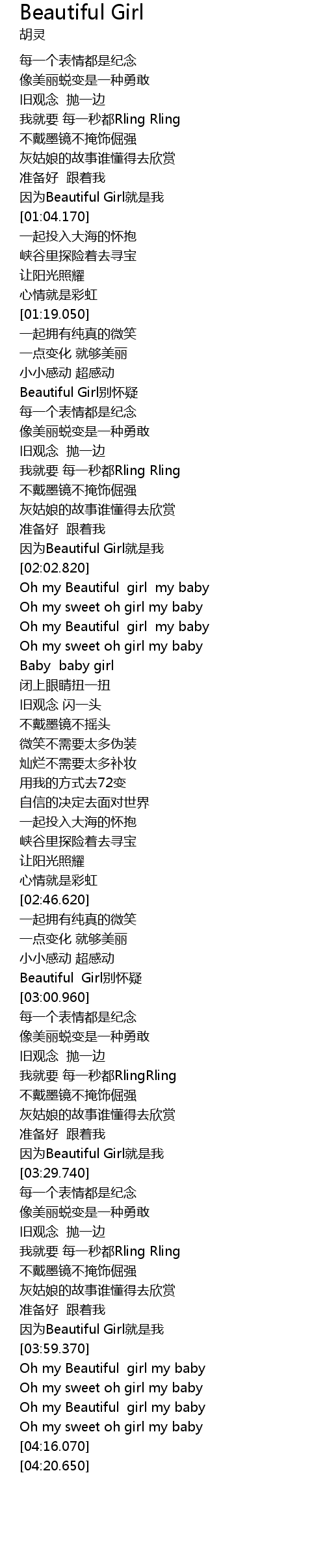 | [01:29.740] | Beautiful Girl别怀疑 |