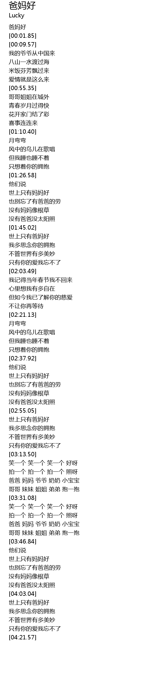 | [01:45.49] | shì shàng zhǐ yǒu bà mā hǎo |