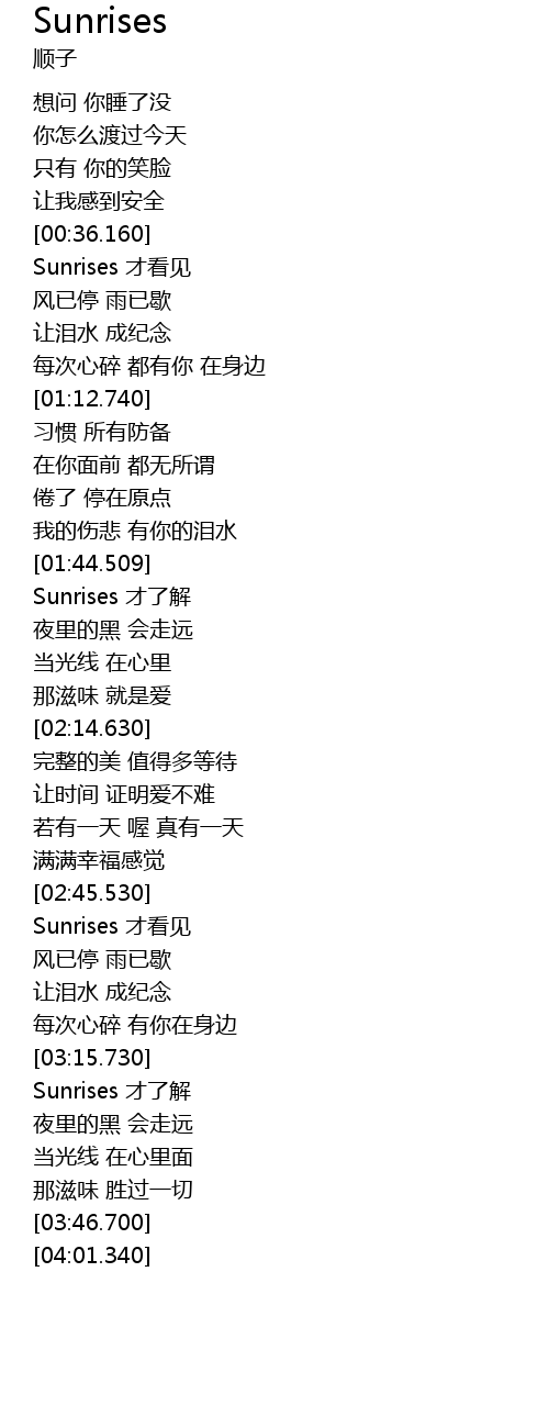| [03:16.520] | Sunrises 才了解 |